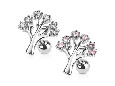 Микроштанга из хирургической стали 316L, украшена латунным родированным деревом с кроной из страз.