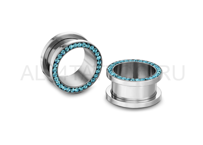 Тоннели из хирургической стали 316l с голубыми стразами.