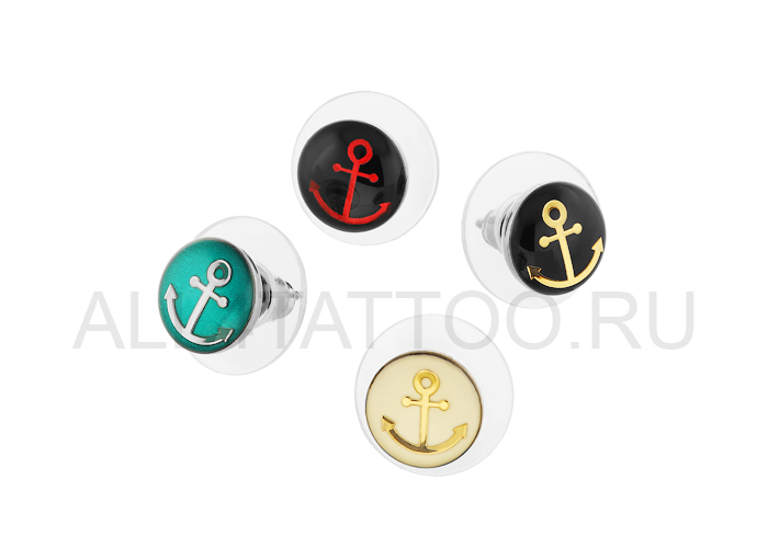 Серьги из хирургической стали  с изображением якоря под прозрачным акрилом. Размер декоративной части - 9мм.