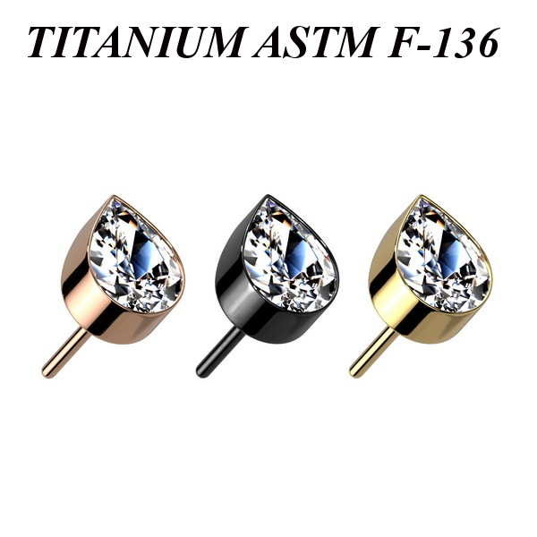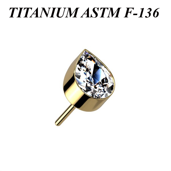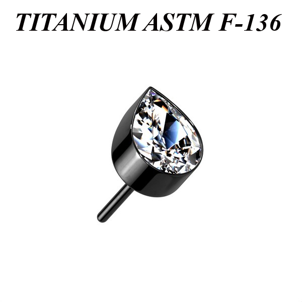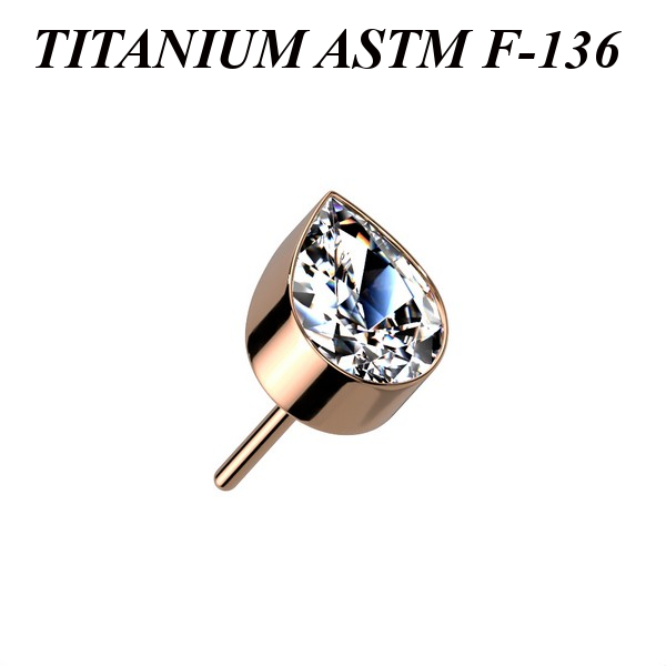 Вставка для безрезьбовых украшений из имплантационного титана 6Al-4V-Eli ASTM: F-136 с PVD покрытием. Украшена прозрачным кристаллом.