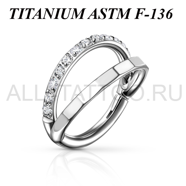 Кликер из имплантационного титана 6Al-4V-Eli ASTM: F-136 с двумя дугами, одна дуга украшена миниатюрными прозрачными фианитами.