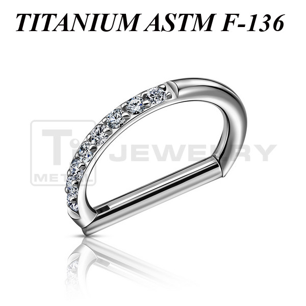 D - кликер из имплантационного титана 6Al-4V-Eli ASTM:F-136 с прозрачными фианитами.