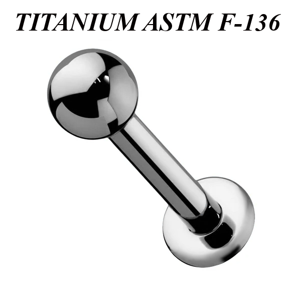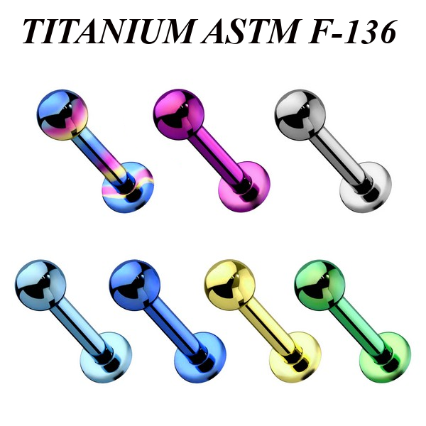 Лабрет из имплантационного титана 6Al-4V-Eli ASTM: F-136 с анодированием. Внутренняя резьба.